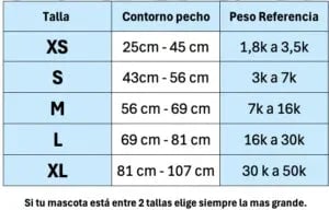Tabla medidas Arnes Journey